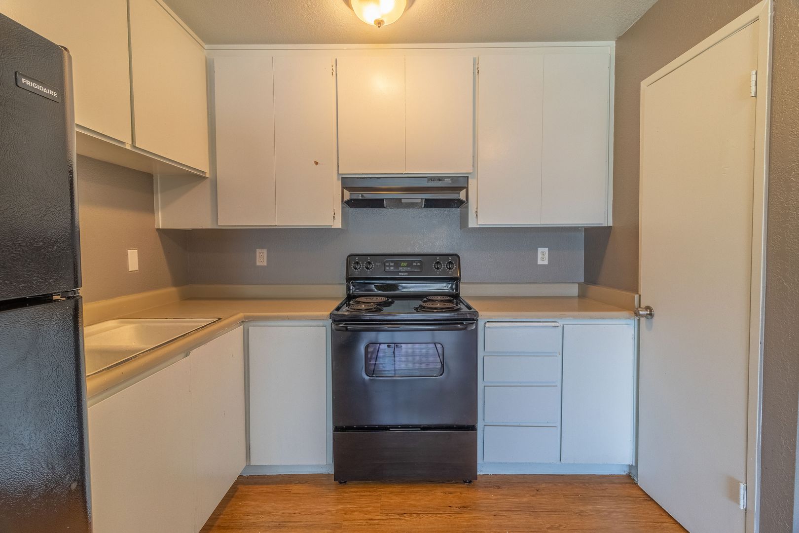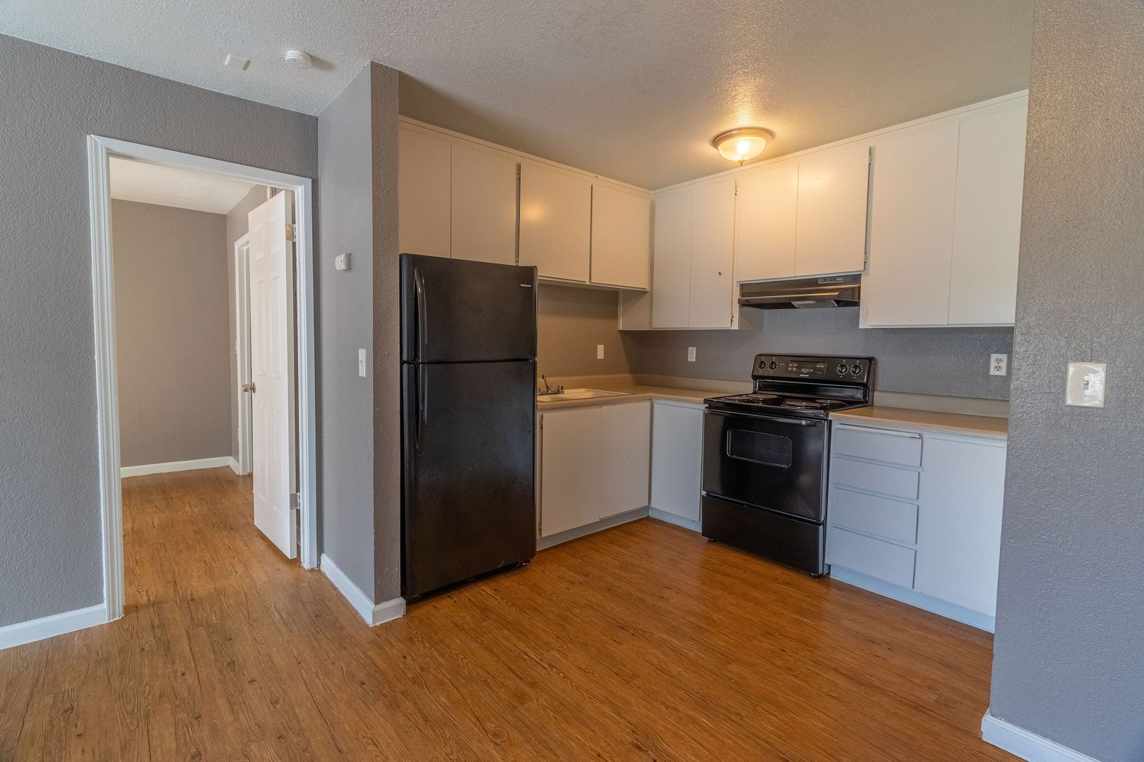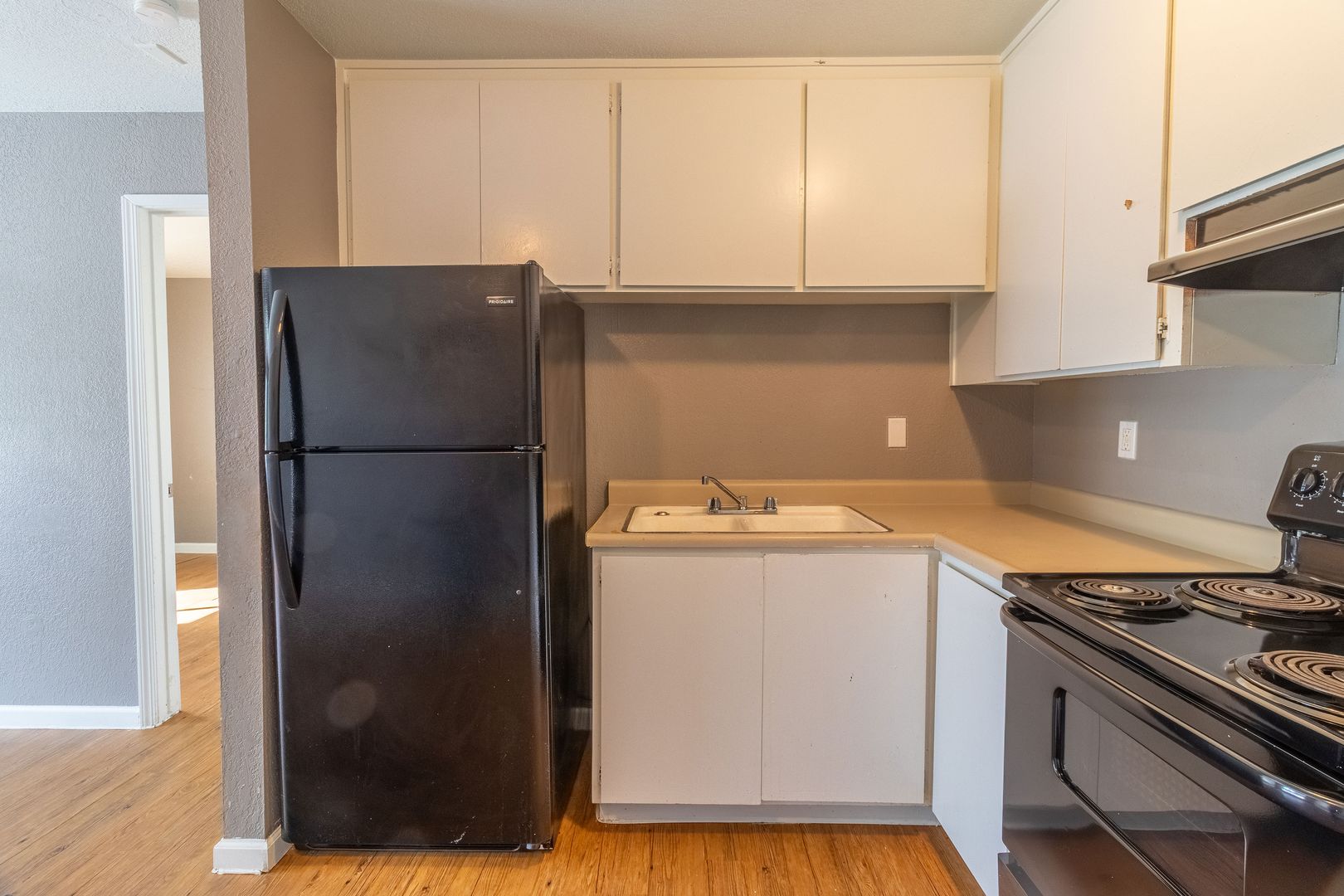 Inside, the apartment features a bright and open living space with modern updates that create a fresh, inviting atmosphere. The kitchen is designed for practicality and ease of use, perfect for daily cooking. The bedroom offers a spacious walk-in closet, providing plenty of room to stay organized.